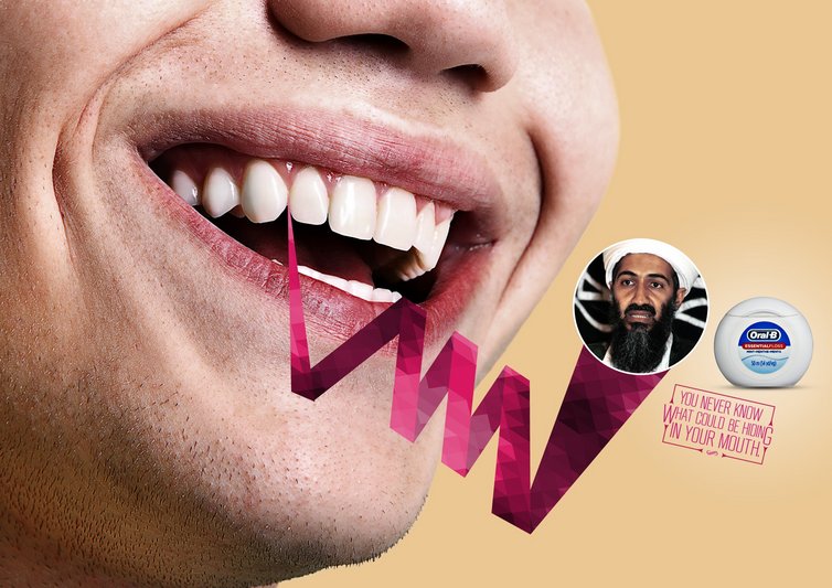 Oral-B牙线广告:你永远不知道会有什么藏在你的牙缝中。看看广告中都有一些什么惊悚的大人物藏在你的牙缝里?